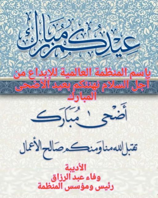 ربي اجعلها أيامًا مباركة على الأمة الإسلامية وعلى الإنسانية . أيامكم هناء وصحة وسلام أحبتي جميعًا. ليس لي قلب يكتب عن التهاني وما يحصل في بلداننا يُدمي القلوب.Read More
