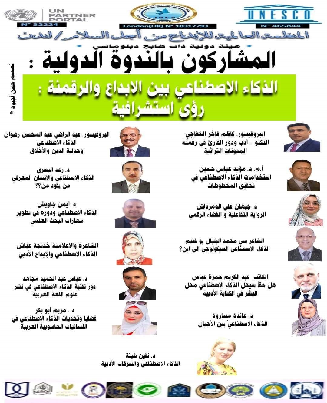 تُقيم المنظمة العالمية للإبداع من أجل السلام، لندن( هيئة دولية ذات طابع دبلوماسي) ندوة بعنوان(الذكاء الاصطناعي بين الابداع والرقمنةرؤى استشرافية)