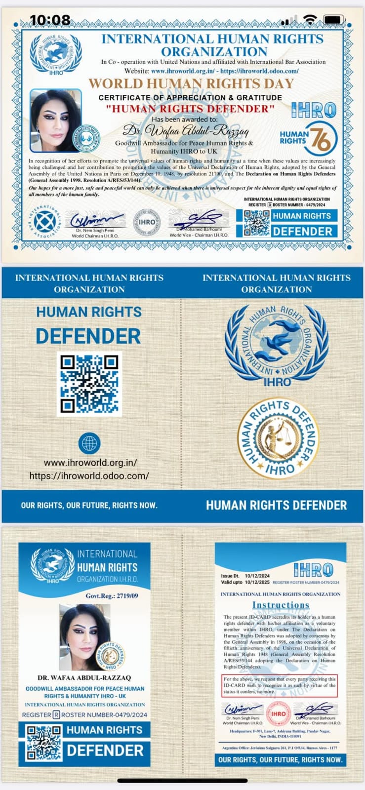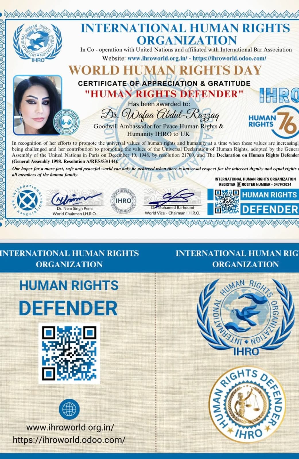 سفير النوايا الحسنة المدافع عن حقوق الإنسان.IHRO